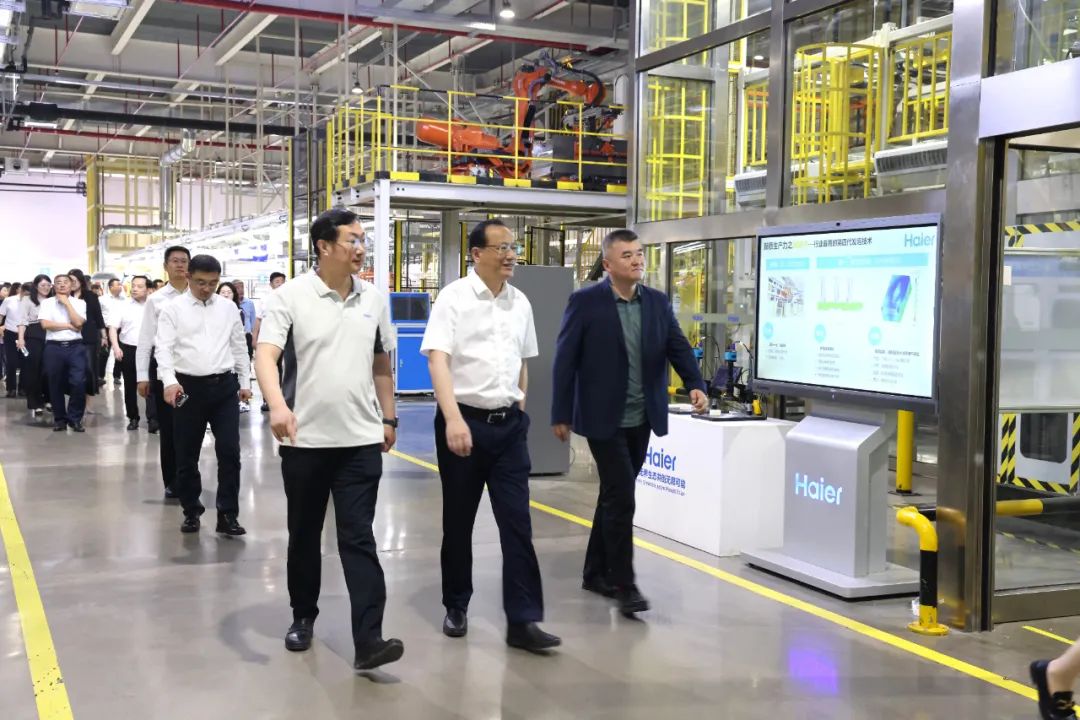 走进海尔卡奥斯工业园现代化的生产车间,智能化生产线高效运转,从原材料投入到成品产出,全程自动化、数字化。工作人员介绍了工业互联网平台建设、智能制造技术应用,考察团成员详细询问生产工艺、产品创新等方面的问题,并就如何推动传统产业智能化改造、提升企业生产效率与产品质量等内容与园区负责人进行深入交流。
