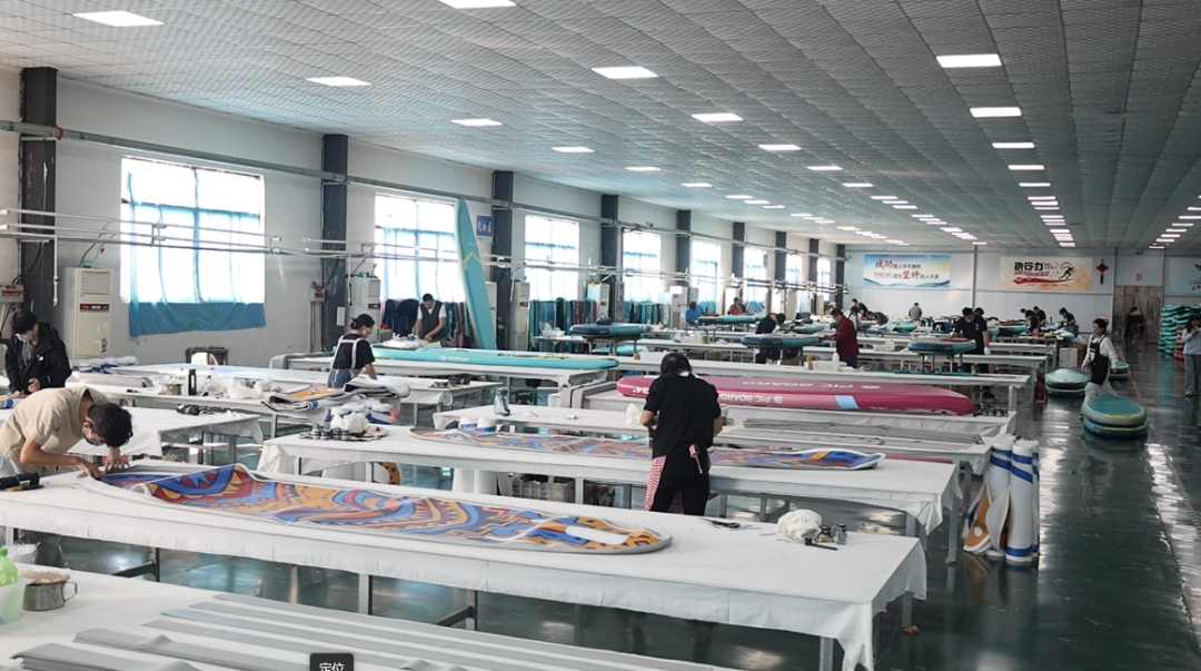 车间生产线上,工人们熟练地进行着原料裁剪、数码打印、人工印刷、合服等工序;仓库内,一块块色彩亮丽的冲浪板整装待发,即将踏上前往海外市场的旅程。在这片看似与传统水上运动无缘的土地上,工人们用精湛工艺将复合材料塑造成符合国际标准的冲浪装备。从选料到成品,每块冲浪板都要经过9道工序的精细打磨,确保其浮力、强度和灵活性达到海外冲浪爱好者的专业要求。
