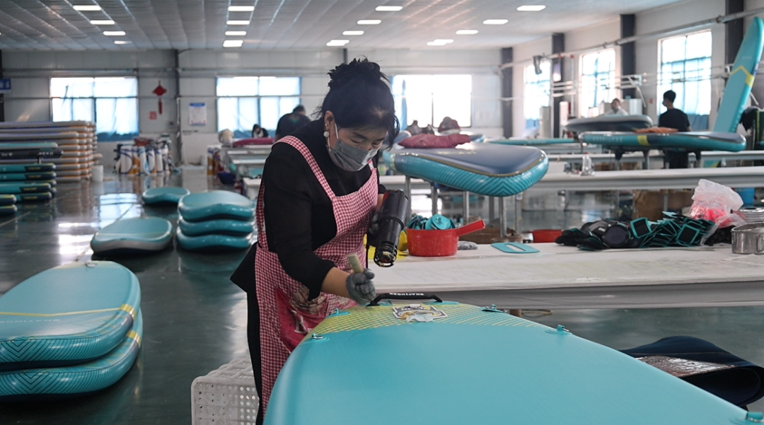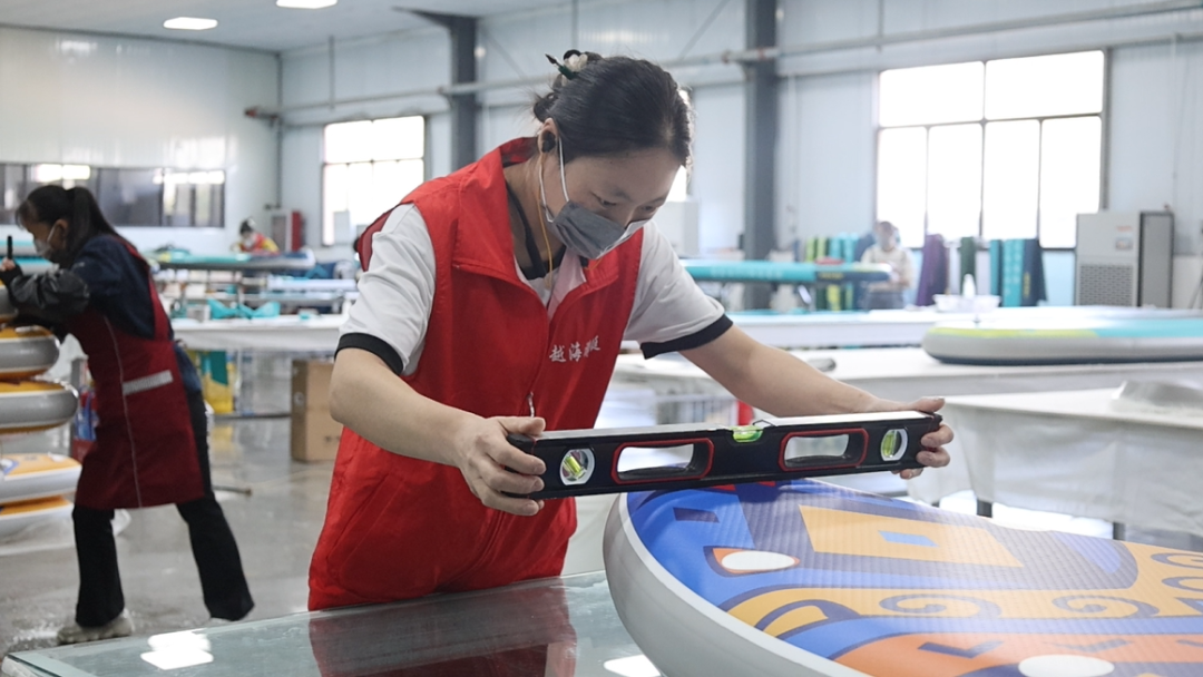 近年来,随着水上运动的全球风靡,冲浪板市场需求呈现爆发式增长。在位于古邵镇的枣庄越海游艇有限责任公司,一股“出海”热潮正随着一块块五颜六色的冲浪板奔涌向前。这个内陆乡镇,正以其精工制造,在全球冲浪版图上激荡起属于自己的浪花。