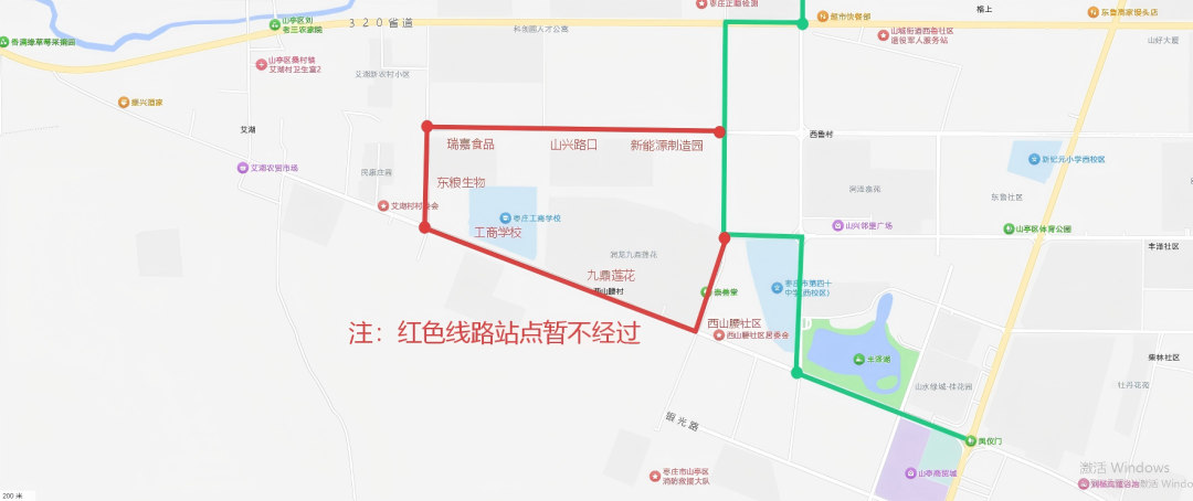 绕行期间:西山腰社区、紫荆花园、枣庄工商学校、东粮生物、嘉瑞食品、山兴路口、新能源制造园站不再途径,其它站点正常经过。