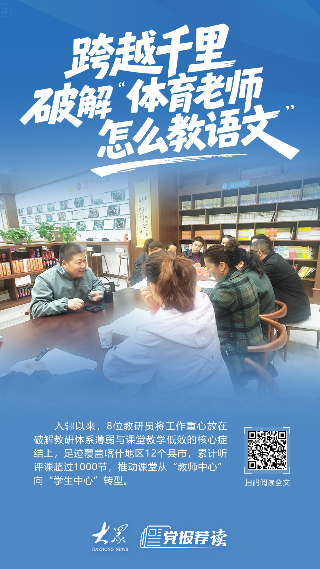 入疆以来,8位教研员将工作重心放在破解教研体系薄弱与课堂教学低效的核心症结上,足迹覆盖喀什地区12个县市,累计听评课超过1000节,推动课堂从“教师中心”向“学生中心”转型。如今,援疆团队已绘制好教学路线图:建设“鲁喀智慧教研云平台”,推广成熟教学模式,实施“种子计划”深度培养本土名师……“我们的作用就是为当地打开一扇窗,留下一座桥,为当地培养教研骨干队伍。所有的付出,都是为了不再被需要。”黄玉兵说。