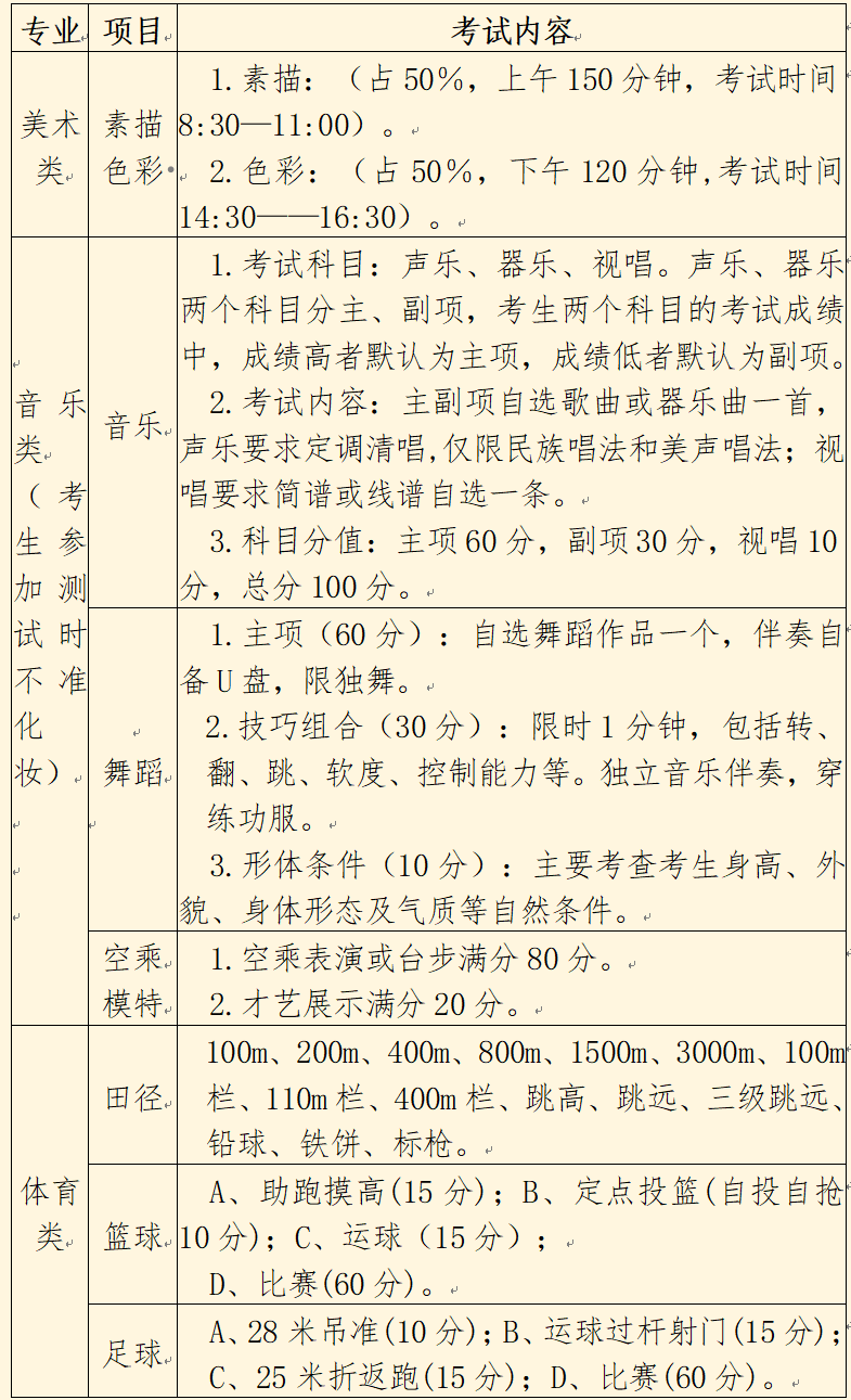 5.音乐类专业考试器乐除钢琴外,其它乐器自备,器乐类测试不含架子鼓、葫芦丝、巴乌、电吉他、电贝司、吉他、电子琴。