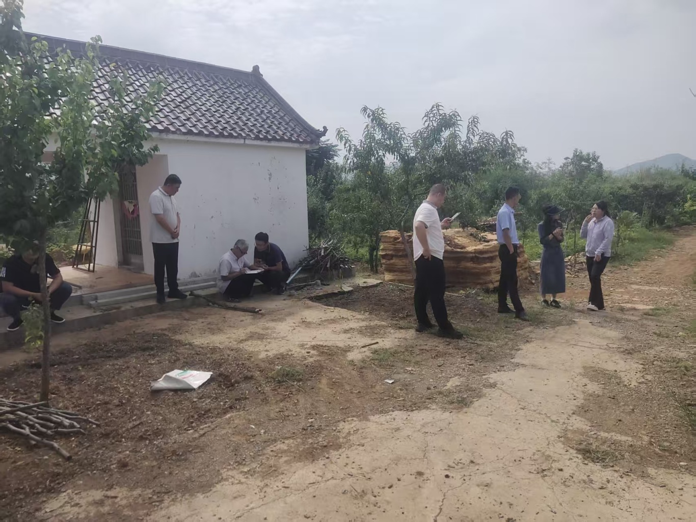 市自然资源和规划局林业产业科科长徐晶晶带队到阴平镇枣园进行林果产品土壤取土检测,镇综合行政执法中心主任刘磊陪同活动。