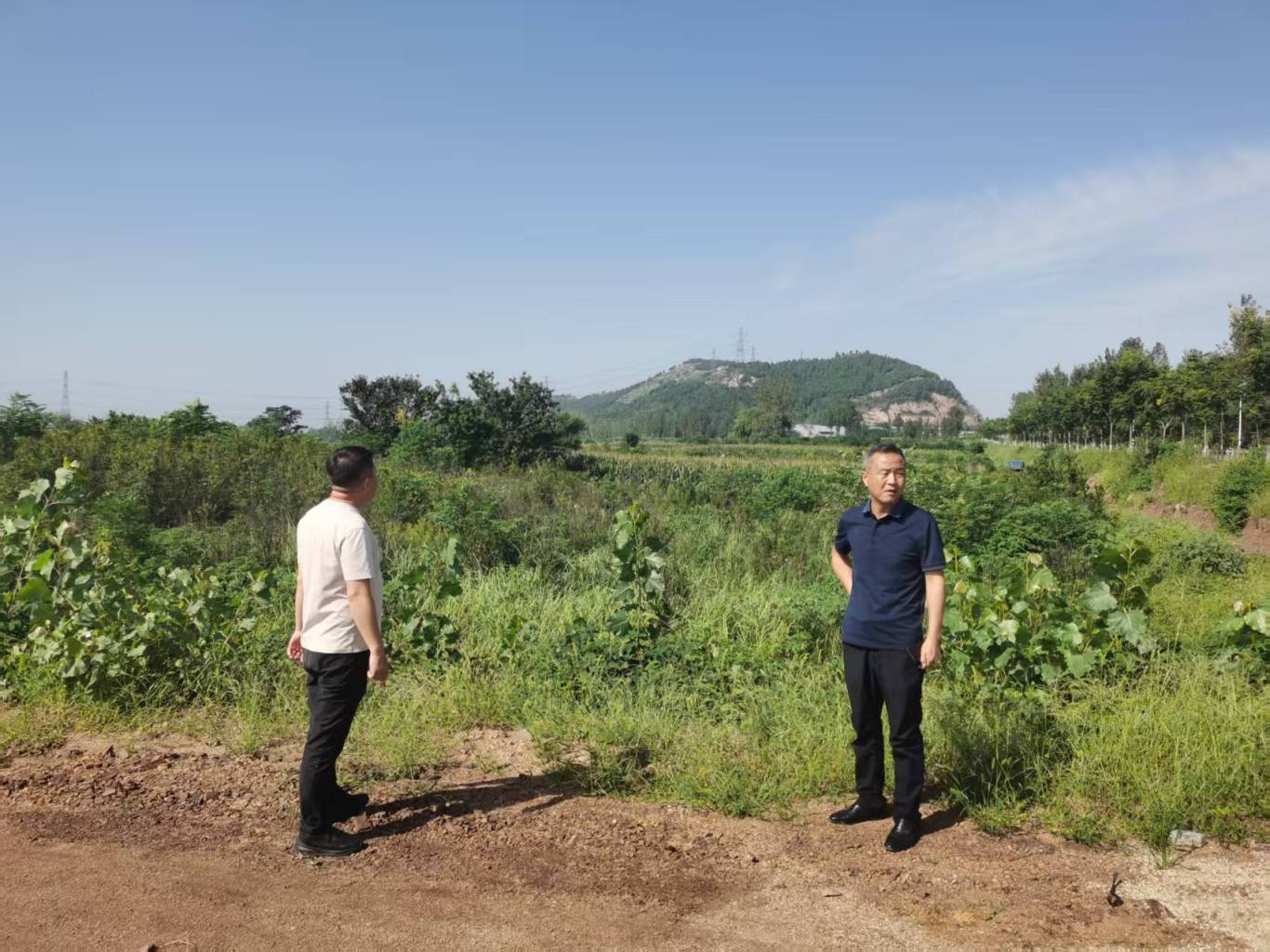 镇人大主席肖中利到村查看后备耕地资源情况。