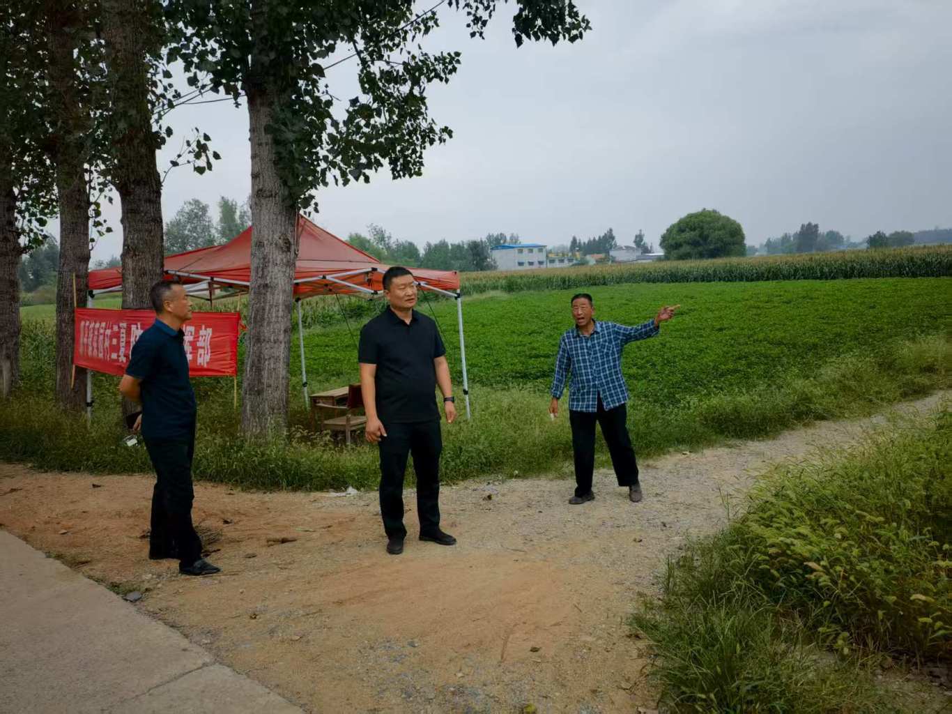 科级干部到村查看汛期防汛安全工作。