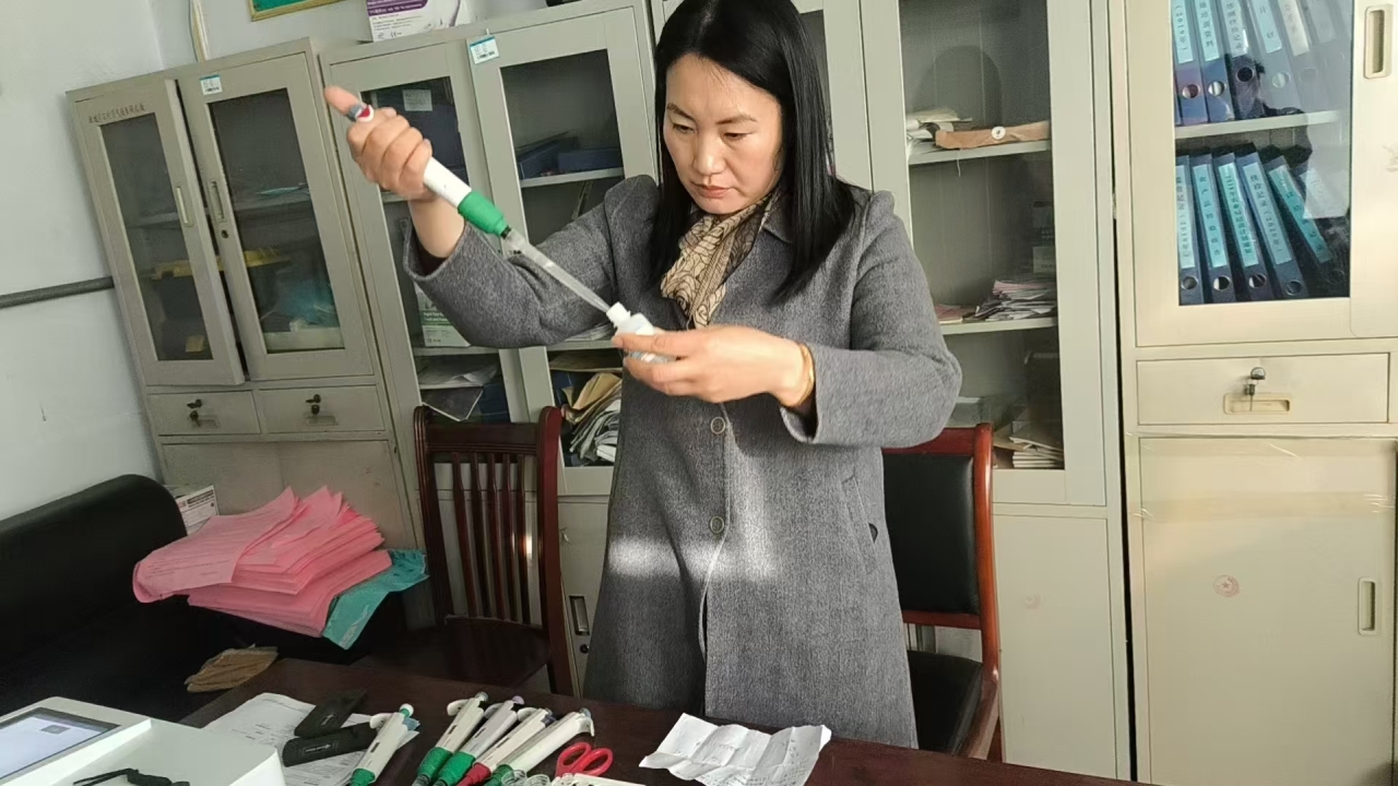 街道农业农村岗工作人员开展蔬菜农药残留检测工作。