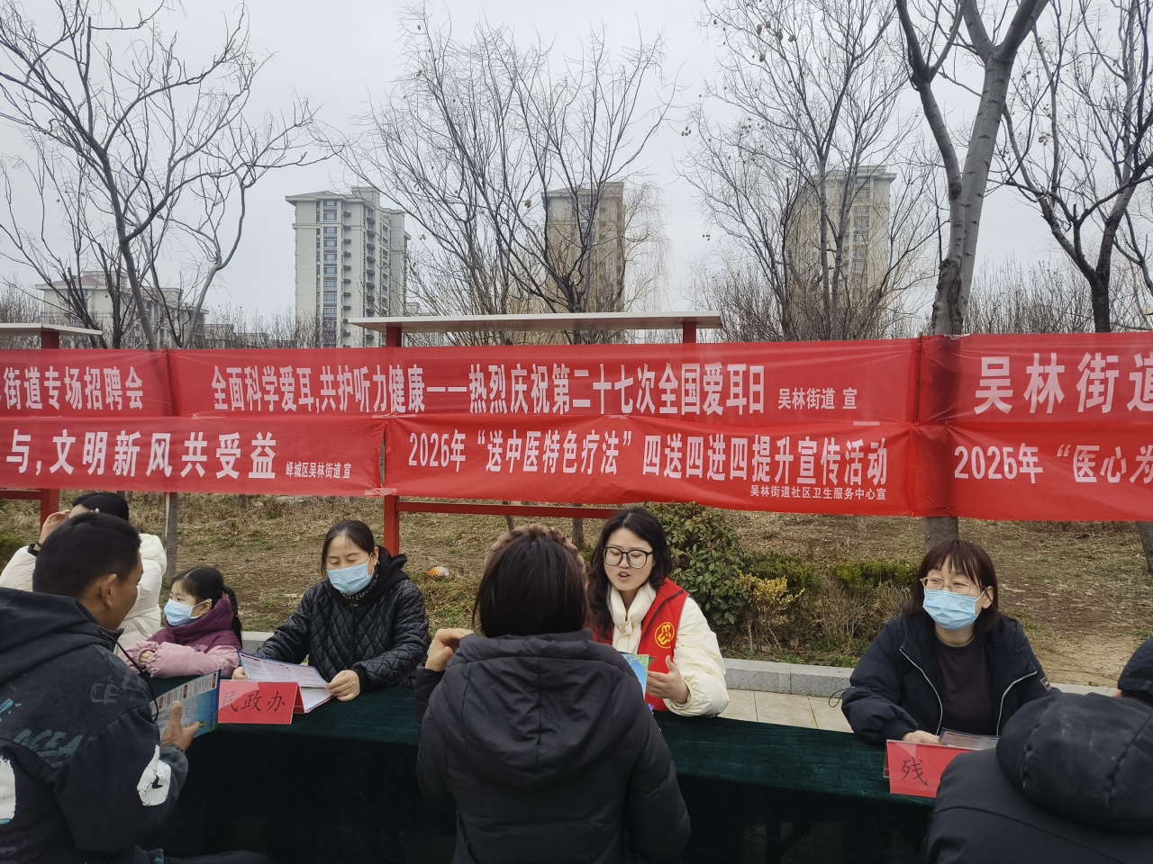 2026年3月3日是第二十七个全国爱耳日,本次主题为“全民科学爱耳,共护听力健康”。2月27日,吴林街道残联联合街道社区卫生服务中心、社会保障岗,在文体中心广场组织开展宣传教育活动,将听力健康知识送到群众家门口。