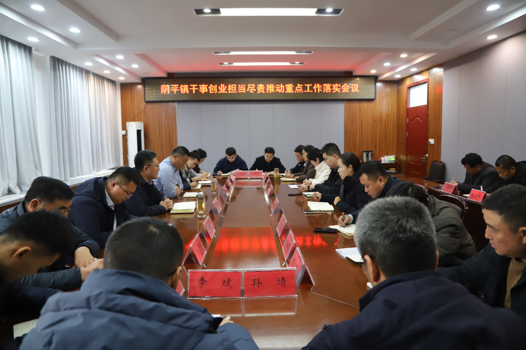 镇党委书记郝健主持召开阴平镇干事创业担当尽责推动重点工作落实会议,传达全省“干事创业、担当尽责”确保“十五五”开好局工作动员会议精神,就工作纪律、村两委换届、矛盾纠纷隐患排查化解、烟花爆竹管控、环境保护、耕地保护、应急消防、山林防火等重点工作进行研究部署。镇党委副书记、镇长吕宗佑安排部署工业运行、重点项目跟进、社会稳定、路域环境整治、年度考核等重点工作,全体科级干部、各点总支书记参加会议。