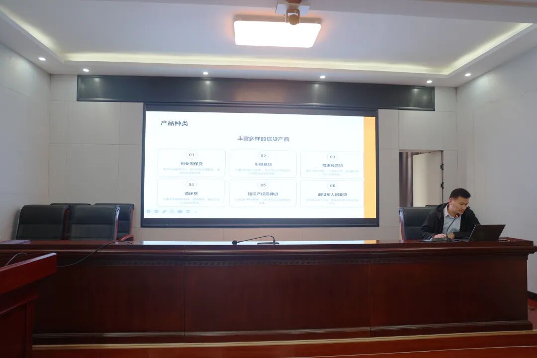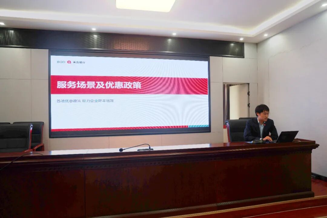 峄城农商银行、青岛银行、枣庄银行分别作业务介绍,推介惠企金融产品。
