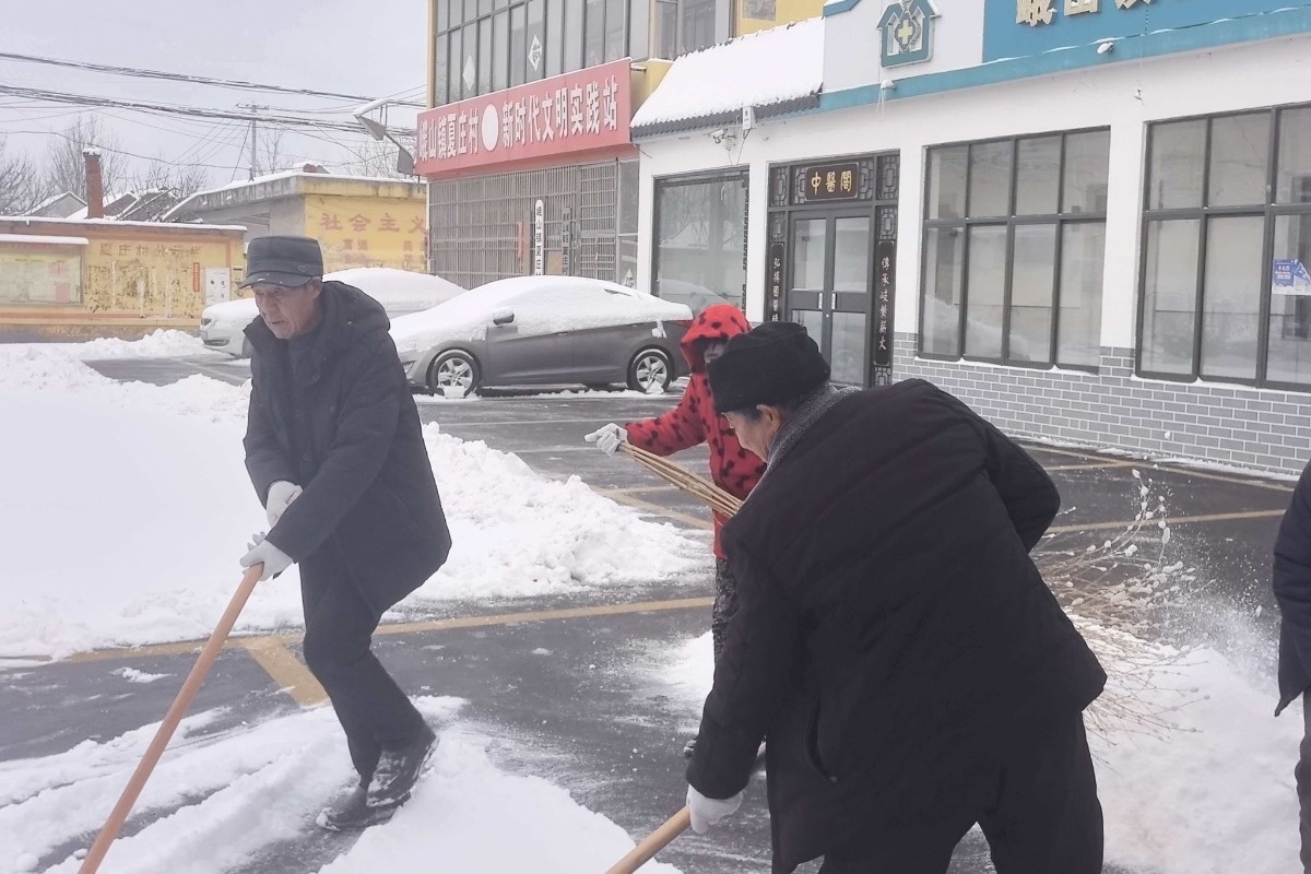 雪后,各村、各部门立即组织开展了道路清雪活动,一场干群同心、众志成城的清雪行动迅速展开。