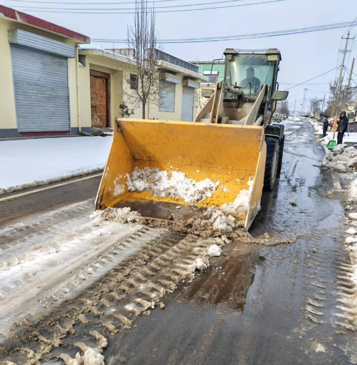 为提高除雪效率,各村出动铲车对村内主要干道进行清理。随着铲车的持续推进路面上积压的积雪很快被清除,一条条干净、畅通的道路逐渐显现,为群众安全出行提供了保障。